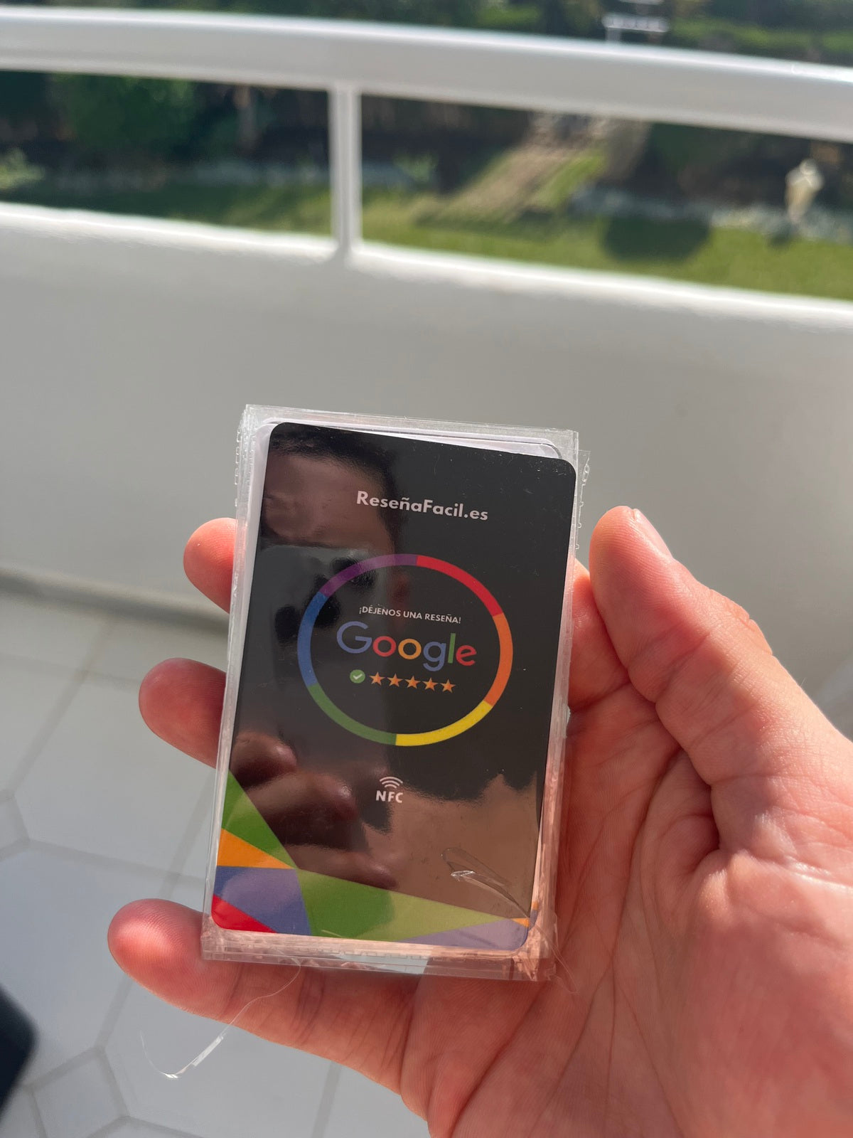 Esta tarjeta NFC de ReseñaFacil es una verdadera joya. Tras ofrecer mis servicios, simplemente entrego la tarjeta a mis clientes y les pido tocar sus teléfonos. Es fácil de usar y ha aumentado mis reseñas en Google.